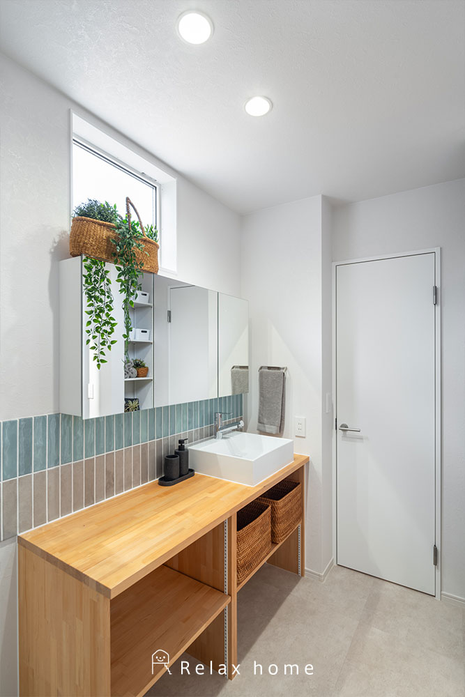 三角形の土地に合わせてプランした特徴的な形の室内には、 住む人を想うアイデアがたくさん。 女性プランナーが考えた家事動線の良い間取りと、 遊び心を取り入れたカラーコーディネートで、日々の暮らしを彩ります。