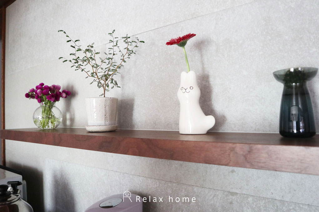 奥様は生花や小物、観葉植物を飾ったりおしゃれなLDKになっているな~と感じています。まだ新築なので床など何か傷つけてしまっていないか、と目は光らせてしまうのですが、そういえばで上の息子はキッチンでコップからこぼした水滴をちゃんと拭く様になっています!(夫)